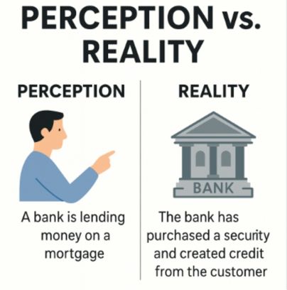 The fraud lies in the bank’s failure to correctly account for your mortgage note as your credit. Instead of treating it as income belonging to you, the bank appropriates it as its property, securitises it, and profits many times over.